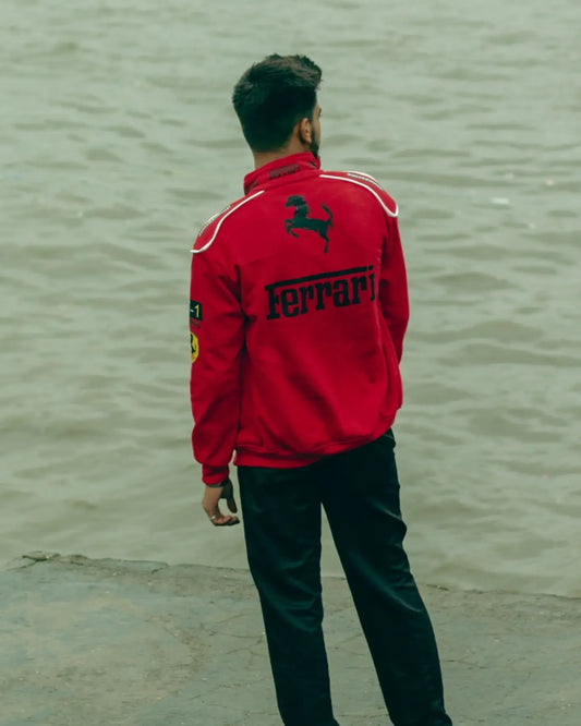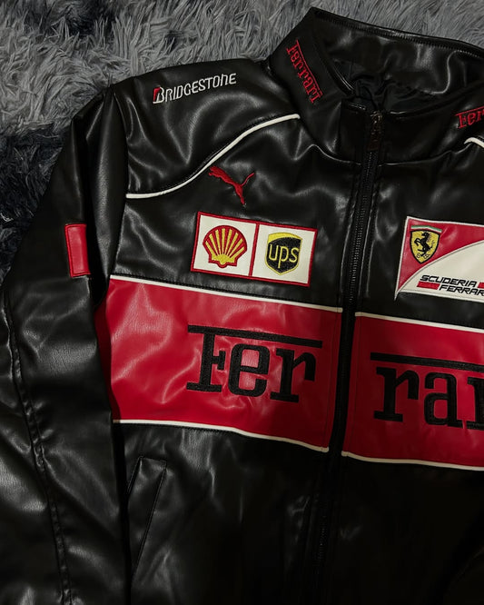 Ferrari F1 Leather Jacket Black | Scuderia Racing Style