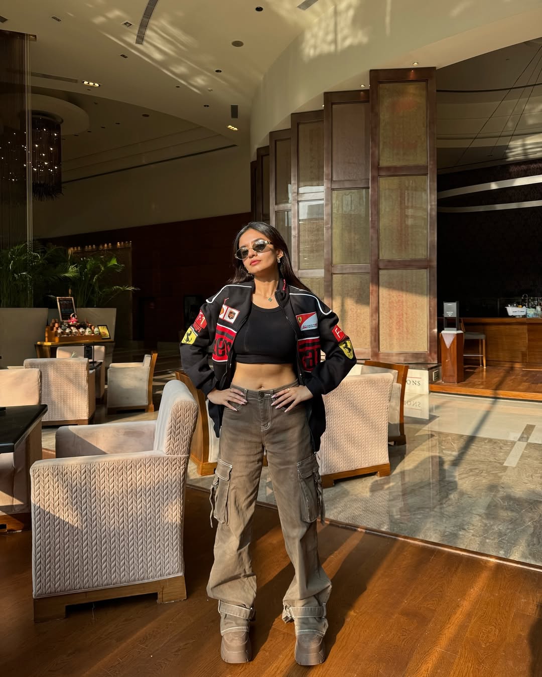 Color: Deep black with vivid, contrasting print.
